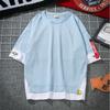Werten Sie Ihre Sommergarderobe mit diesem Herrenmode Baumwoll-T-Shirt im lockeren Schnitt im koreanischen Stil aus der Sommerkollektion 2020 auf.. Dieses Hemd aus hochwertiger Baumwolle bietet überlegenen Komfort und Atmungsaktivität für die warmen Tage.. Das Hemd verfügt über einen Stehkragen für einen Hauch von Raffinesse, während die stilvolle Buchstabenverzierung einen modernen Flair verleiht.. Perfekt für alle, die mühelosen Stil und Komfort schätzen, ist dieses T-Shirt eine vielseitige Ergänzung für jedes Freizeitoutfit.