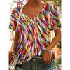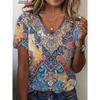 Damen T-Shirts V-Ausschnitt 3D Kunstdruck Tops Locker Kurzarm T-Shirts Sommer Streetwear Mode Lässig Übergroße Damenbekleidung
