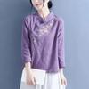 Besticktes Hemd im chinesischen Stil für Damen aus Baumwolle und Leinen, Stehkragen, Dreiviertelärmel, Vintage-Freizeithemden, Hanfu-Oberteile