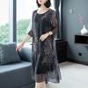 Damen Sommerkleid mit Bauchbedeckung und schlankmachendem Druckkleid, eleganter langer Rock für mittelalte und ältere Übergrößen-Temperament