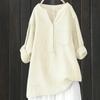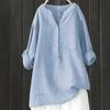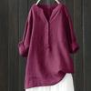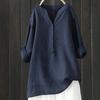 Damen Locker Einfarbig Stehkragen Knopf Langarm Baumwolle und Leinen Top