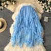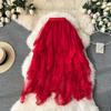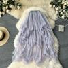 Sommer Frauen Elegante Elastische Hohe Taille Mesh Prinzessin Lange Midi Unregelmäßigen Kuchen Rock