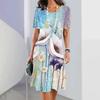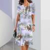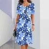 2025 Sommerurlaub Kleid mit Knitterblumenmuster elegant kurzärmlig O-Ausschnitt Kleidung Streetwear lockeres Kleid
