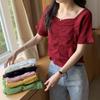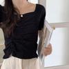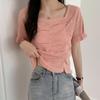 Summer Retro Short Top Dew Collarbone Slim Thin Short-sleeved Knit Shirt Female Casual Summer Essential Comfort and Style Slim Fit Pullovers Tees
