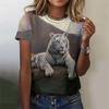 Damen T-Shirt mit Fierce Tiger Grafik 3D Gedruckte T-Shirts Kurzarm Sommer T-Shirts