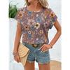 Mode Damen Rundhals T-Shirt Sommer Lässig Outdoor Kurzarm Oberteile Blumenmuster Stil Übergröße Locker Damenbekleidung
