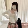 Verdicktes weißes Hemd mit quadratischem Kragen zum Unterziehen für Damen mit schlankem deutschem Samt-T-Shirt für Damen mit langen Ärmeln für Damen mit Superfigur