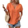 Damenmode Lässiges Button-Down-T-Shirt mit V-Ausschnitt und kurzen Ärmeln