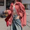 Entdecken Sie eine stilvolle Ergänzung für Ihre Garderobe mit diesem Damen-Retro-Plaidhemd, perfekt für den frühen Frühling.. Das Hemd hat ein klassisches rotes Karomuster, gefertigt aus weichem und atmungsaktivem Baumwollmaterial, das den ganzen Tag über für Komfort sorgt.. Entworfen mit einer lockeren Passform, bietet es eine entspannte und dennoch schicke Silhouette, ergänzt durch lange Ärmel und einen Umlege-Polokragen für zusätzliche Raffinesse.. Das Hemd ist mit funktionellen Taschen verziert, die Praktikabilität mit seinem von Vintage inspirierten Design verbinden.