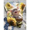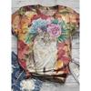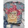 Damen T-Shirt Mode Lustiger Blumiger Katzen-Print Kurzarm Reguläre Oberteile Rundhalsausschnitt Feiertagswochenende Schwarz Gelb Rot Blau Braun Frühling & Sommer