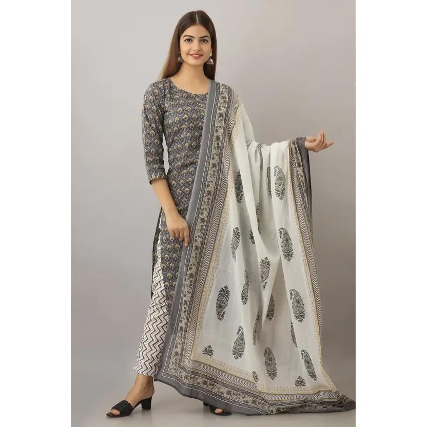 Indisches Pakistanisches Kurta Hose Dupatta Set Damen Reine Baumwolle Oberteil Tunika Kurti Kleid VF-20216