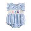 Baby Mädchen Strampler Osterkleidung Hasenstickerei Karomuster Rüschen Rundhalsausschnitt Flatterärmel Sommer Bodys Jumpsuits