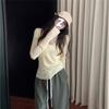 Gelbes schulterfreies, zweiteiliges, schmales Langarm-Top mit Spitzennähten für Damen – Herbstmode