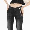 2024 Retro Damen Hüftjeans Schwarz & Grau Push-Up Micro-Schlagjeans