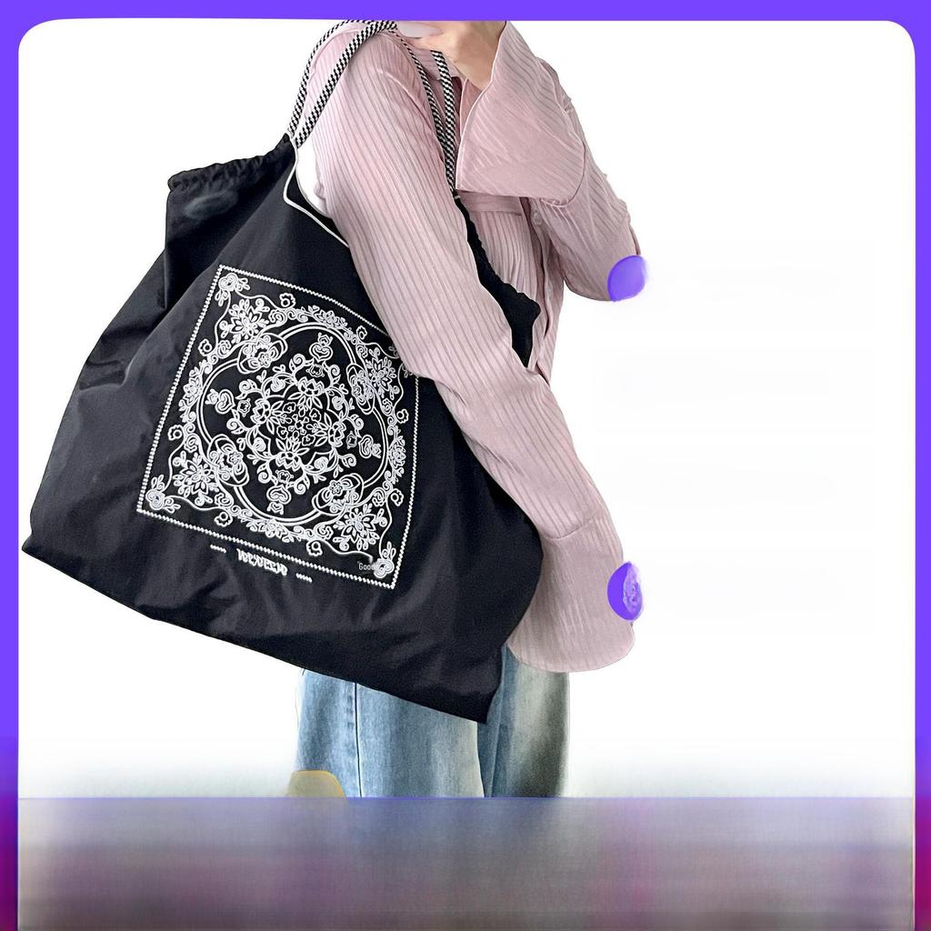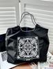 Chinesische Marke Bestickter Schwarzer Oxford-Stoff Shopper - Großes Fassungsvermögen, Vielseitige Nylon-Handtasche