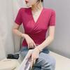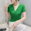 2024 Sommer V-Ausschnitt Slim Kurzarm Mesh T-Shirt Pullover für Damen