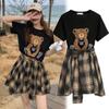 Luxuriöses Sommer Bären T-Shirt & Karierter Unregelmäßiger Rock Zweiteiler