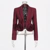 2025 Rosa 3D-Rose Zweiteiler: Slim-Fit Blazer & Plissee-Midirock