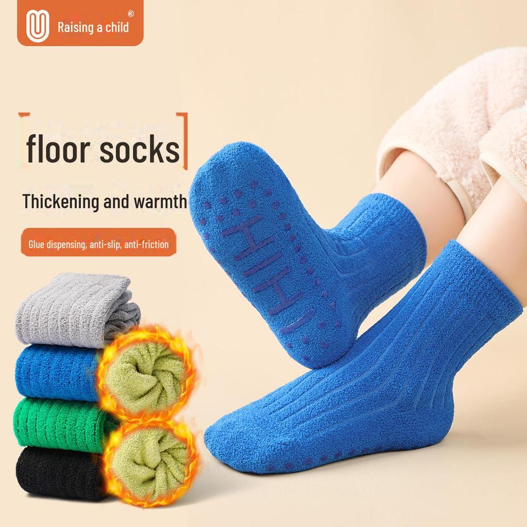 Dicke Korallenfleece-Anti-Rutsch-Indoor-Socken für Jungen, mittelhoch, warm für Herbst/Winter.