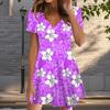 Summer Fashion Women's V Neck Short Sleeve White Flower Printed Dress Sex Short Skirt Dresses