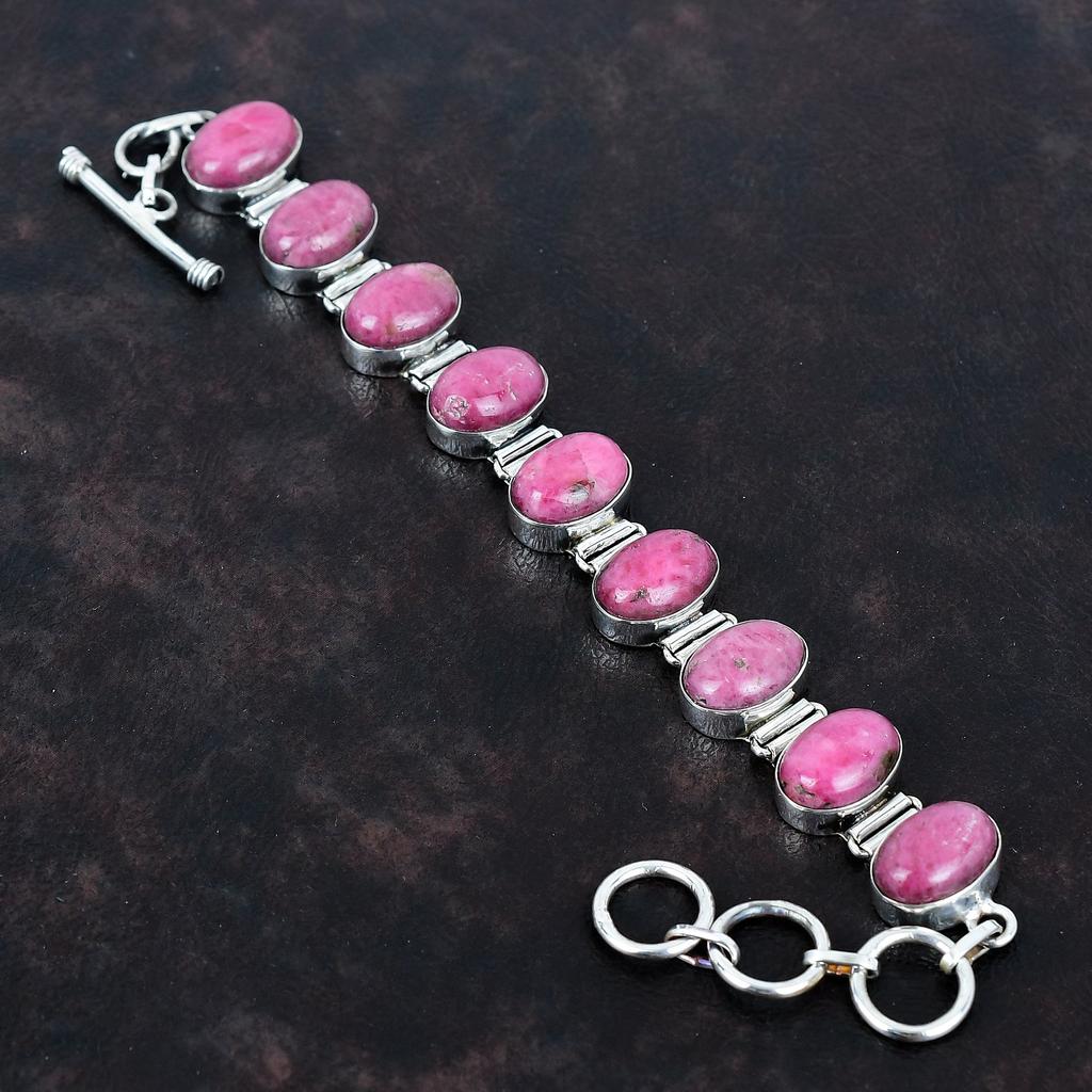 Rhodonit Edelstein Armband handgefertigt Unikat Design Schmuck 925 Sterling Silber Armband verstellbar Kettenarmband Geschenke für sie Boho Schmuck