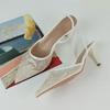 Liyke Sommermode Weiße Perle Designer Sandalen Damen Pumps Aushöhlen Mesh Spitzzehen Pantoletten Hohe Absätze Hochzeit Ballschuhe