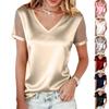 2022 Damen Kurzarm-T-Shirt mit V-Ausschnitt und einfarbiger Farbe für Frühling und Sommer