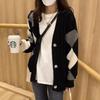 Damen Midilanger Colorblock Rautenstrick Cardigan - Lockerer, Lässiger Stil
