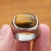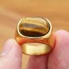 Fashion Punk Goldene Farbe Tigerauge Braune Steine Ringe Für Männer Frauen Klassische Einfache Edelstahl Stein Ring Partei Schmuck