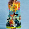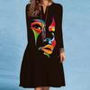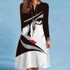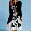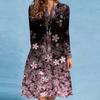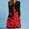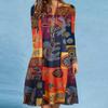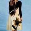 Women's Spring/summer Print Long-sleeved Dress V-neck Loose Swing Long-sleeved Mid-length Dress