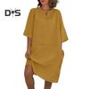 Wir präsentieren unser Damenkleid aus Baumwollleinen, eine perfekte Mischung aus Komfort und Stil. Dieses Kleid aus weichem und leichtem Stoff bietet einen lässigen, lockeren Schnitt, der den ganzen Tag über Komfort gewährleistet. Das lockere Taillendesign ermöglicht eine schmeichelhafte Passform für verschiedene Körpertypen und ist somit eine vielseitige Wahl für die meisten Frauen.