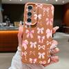Stoßfeste schlanke Handyhülle mit rosa Schleifendruck für Samsung S25 S24 FE S23 Ultra S22 A56 A36 A16 A55 A26 A35 Ledertextur TPU Weiche matte Bumperabdeckung