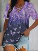Farbe Kreuz V-ausschnitt Streifen Elegante Casual Kurzarm T-shirt Frau