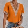 Fashion Women Summer Solid Color T-Shirts Hollow Out Design Lace V-Neck Short Sleeve Casual Loose Pullovers Tops Tees