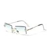 A18976 Square Borderless Sunglasses For Women, Retro Diamond Trimmed Transparent Glasses, Popular