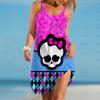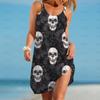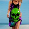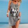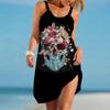 Damen Kleid Top Frau Sling Sommer Ärmellose Partykleider 3D Digitaldruck 2024 Sexy Totenkopf Blume Boho Strand Gothic