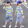 Sommeroutfit für Jungen, neue trendige Sportbekleidung, dünne Kurzarmkleidung für große Kinder, stilvolles Freizeitset