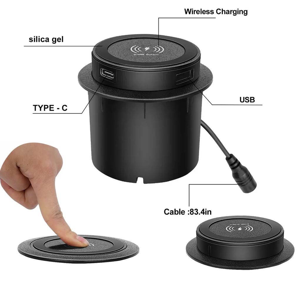 Type : Embedded Wireless Charger with USB and Type-C ports