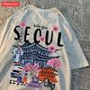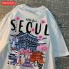 Lässige Damen-T-Shirts mit Seoul-Motiv, schöne Landschaft, bedruckt, kurzärmelig, O-Ausschnitt, atmungsaktiv, übergroß, modische Damenkleidung