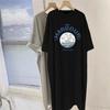 Mittel und Lang Knielang Reine Baumwolle Grau Kurzärmeliges Kleid Damen Sommer Neu Ausländischer Stil Locker Geschlitztes T-Shirt Rock