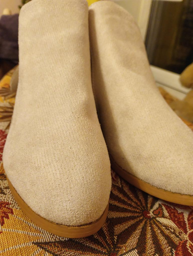 Sie sehen ziemlich billig aus, auf dem Bild sehen sie viel besser aus. Wenn ich sie im Laden gesehen hätte, hätte ich sie nie genommen.. Naturwildleder hatte ich nicht erwartet, aber auch keinen flauschigen Flanell wie bei Baby-Stramplern konnte ich mir nicht vorstellen.. Man muss sagen - sauber genäht, bequem zum Laufen und für breite Füße.