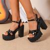 Sandals women's 2025 summer new fashion new high-heeled thick high-heeled fish mouth one-word buckle sandals women