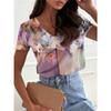 Damen T-Shirt 3D Farbverlauf Blumen Blumendruck Mode Kurzarm V-Ausschnitt Regulär Oberteile Sommer Damen T-Shirt Oberteile Kleidung