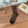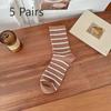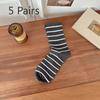 5 Pairs of Female Autumn and Winter Stripes Wear Mid Tube Cotton Socks