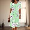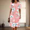 Damenmode Anmutiger Blumendruck Sommer Frühling Kurzarm O-Ausschnitt Freizeitkleider