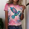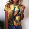 Summer Round Neck 3D Bird Peacock Print Top Fashionable Casual Short Sleeved Women's T-shirts