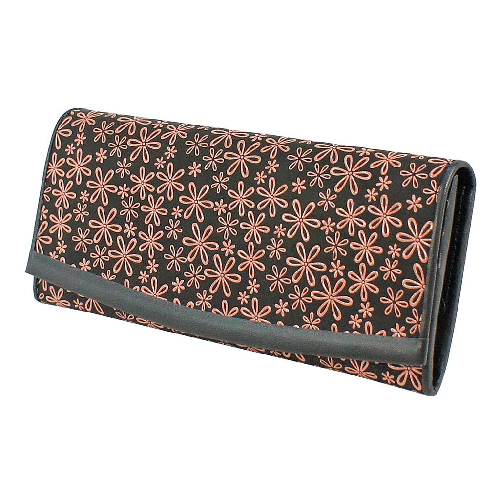 Inden Langes Geldbörsenbündel T Dünnes Hirschleder Schwarz x Rosa Lack Schneegrasmuster [Indenya] 2311-51-160