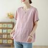 Sommer Neu Kurzärmeliges Baumwollleinen Künstlerisch Schlicht Locker Lässig Vielseitig Rundhals Kurzarmshirt