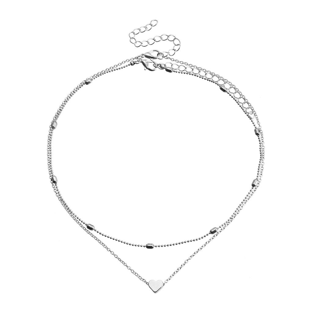 Pfirsichherz Lagenkette Personalisiert Einfache Mehrlagige Kleine Kette für den Alltag Doppelt