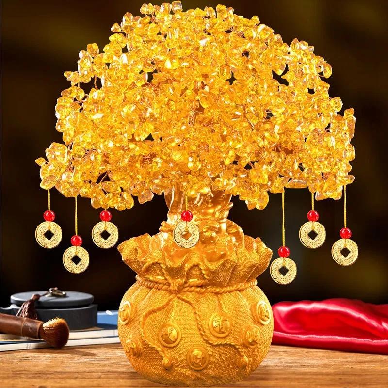 Goldener Glücksbaum Chinesischer Barren Kristall Glücksbaum Ornament Reichtumsornament Heim Büro Tischdekoration Tischplattenhandwerk